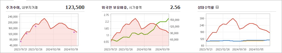 현재 에코프로머티의 주가는 123,500원이며 전일 대비 -8,000원의 하락세를 보이고 있습니다. 에코프로머티의 주주 구성은 에코프로(외 20인)이 지분의 46.01%를 소유하고 있습니다. 에코프로머티는 전자 장비 및 기기 기업으로, 현재 주가는 123,500원입니다. 시가 총액은 8조1885억 원이며 발행 주식수는 68,985,218주입니다. 외국인 보유 비중은 2.56%이며, 장중 거래량은 475,875주를 기록했습니다. 또한, 매출액은 9,525억 원을 달성했습니다.